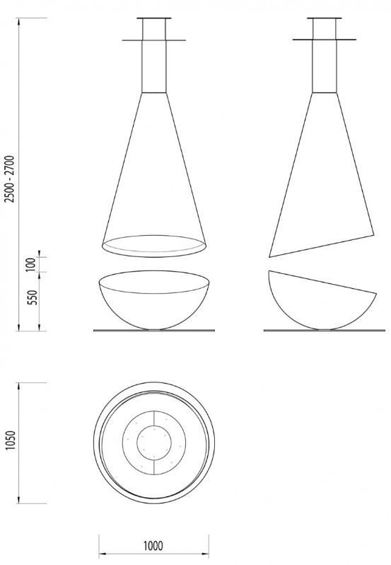 Dimensions// 2500-2700 h x 1050 Ø mm